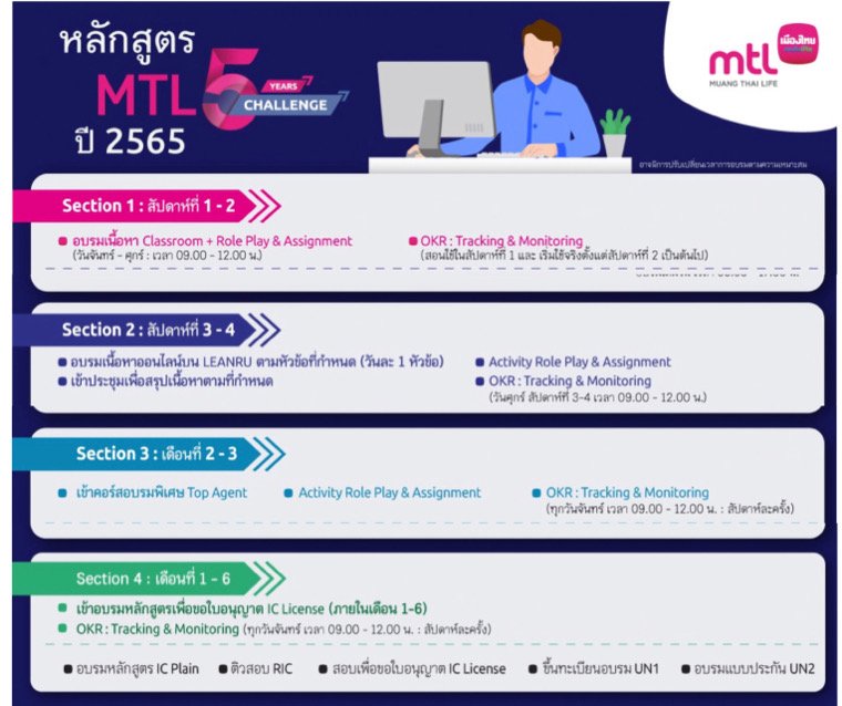 เริ่มอบรมหลักสูตร MTL 5 Years วันที่ 7 มีนาคม - 31 กรกฎาคม 2565 (6 เดือน)