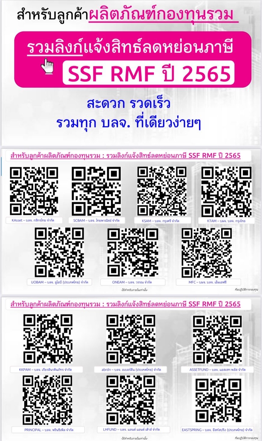 เนื่องจากปีภาษี 2565 จะเป็นปีที่เริ่มใช้กฏเกณฑ์ใหม่ของสรรพากร ที่กำหนดให้ผู้เสียภาษีที่ซื้อกองทุนรวม SSF หรือ RMF ตั้งแต่วันที่ 1 มกราคม 2565 และต้องการใช้สิทธิลดหย่อนภาษี จะต้องขอใช้สิทธิกับสรรพากร ในการยื่นลดหย่อนภาษี ประจำปี 2565