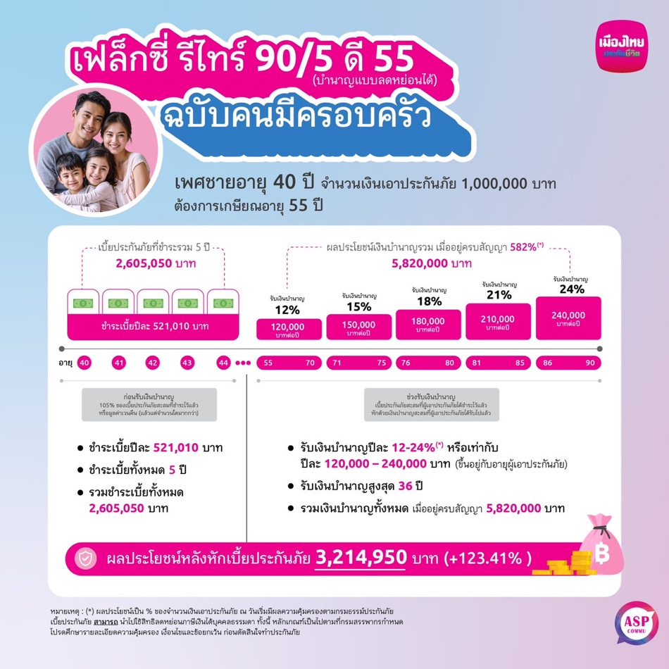 เฟล็กซี่ รีไทร์ 90/5 ดี 55 (บำนาญแบบลดหย่อนได้) ฉบับคนมีครอบครัว