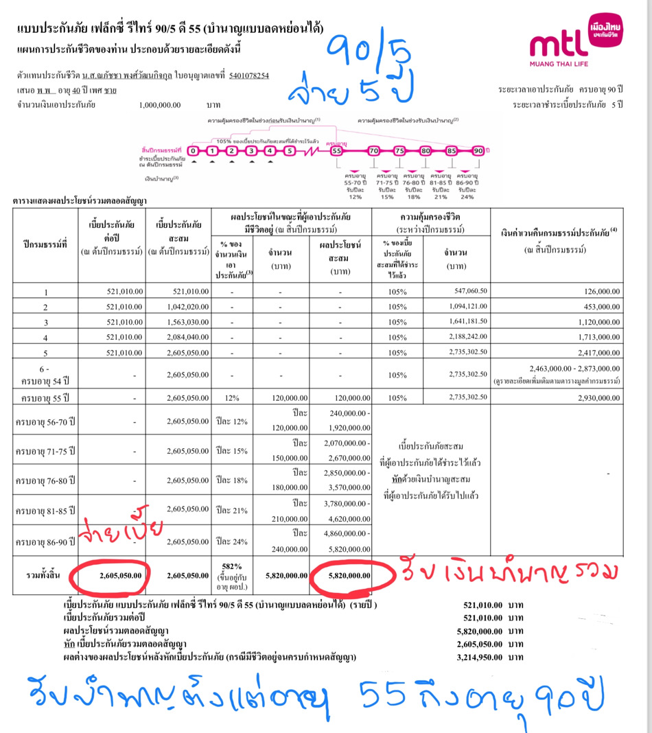 ****รวมตลอดสัญญา รับเงิน 582% ของทุนประกัน คือ รวมรับ 5,820,000****