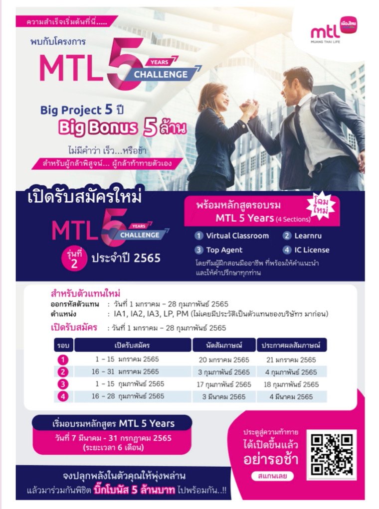 เปิดรับสมัครใหม่พร้อมหลักสูตรอบรม MTL 5 Years (4 Sections) ประจำปี 2565